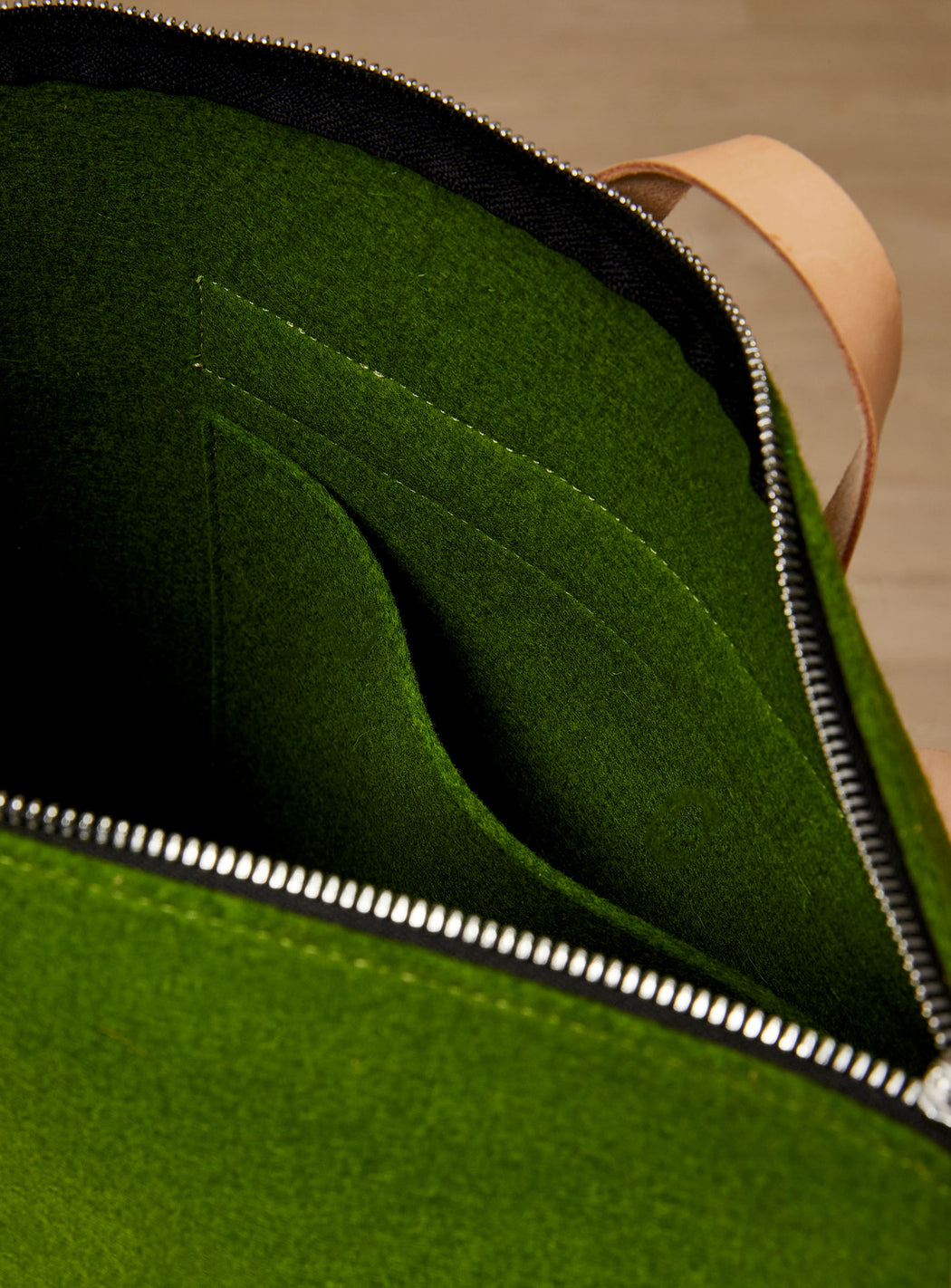 - Feutre de laine mérinos et cuir à tannage végétal