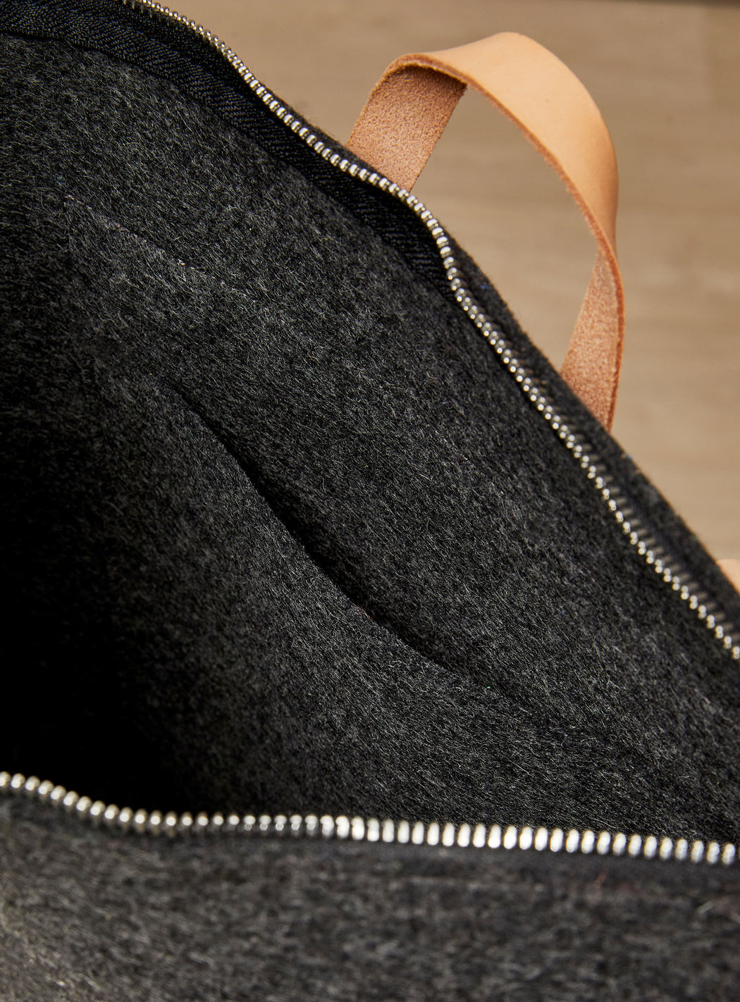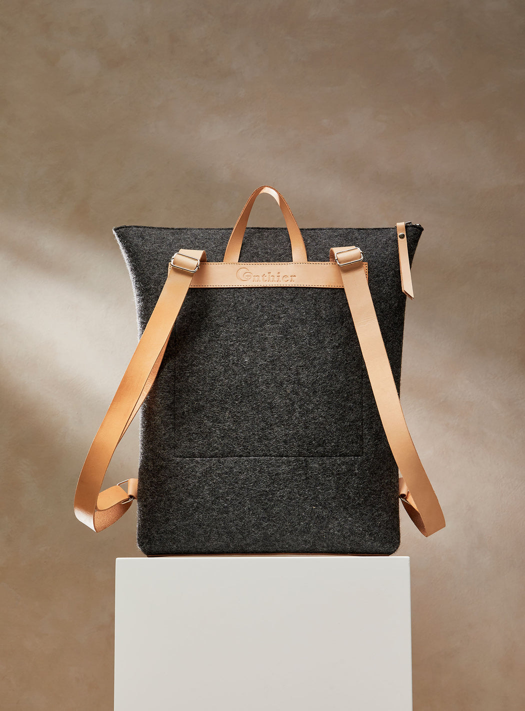 - Feutre de laine mérinos et cuir à tannage végétal