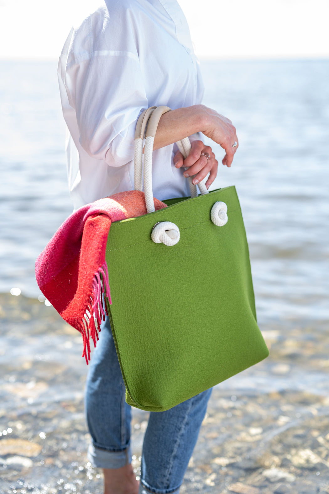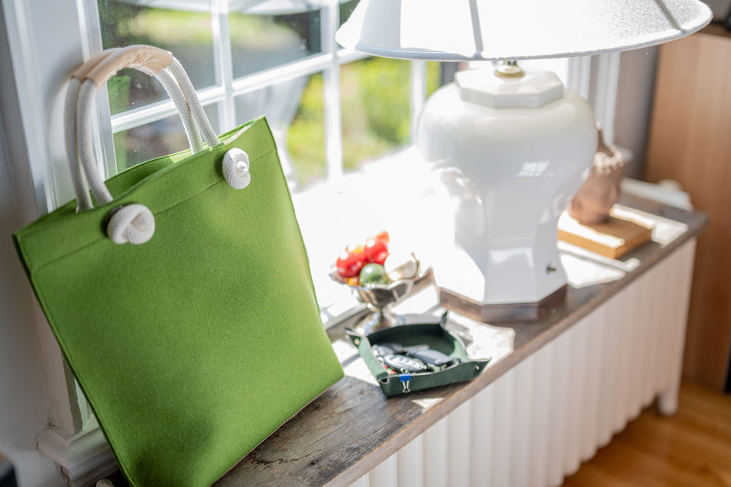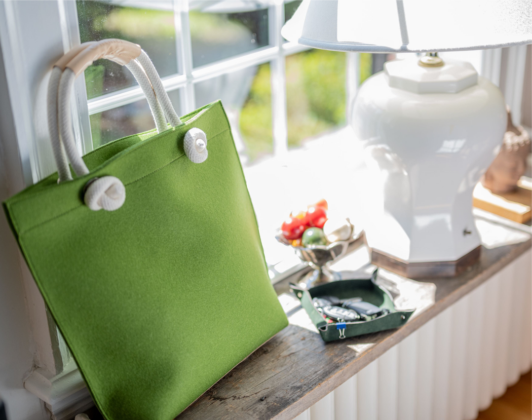 Le sac Mistral en feutre de mérinos est parfait pour les femmes actives qui ont besoin d'avoir avec elles un peu plus que leur essentiel. Il peut se porter à la main comme à l'épaule et contient une poche intérieure. Les anses sont faites de fils de coton tressé surmontée de poignées en cuir végétal naturel estampillé du logo. L'assise du sac est faite d'une plaque de cuir végétal embossé pour protéger et offrir une durabilité.