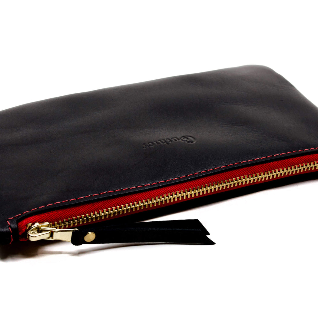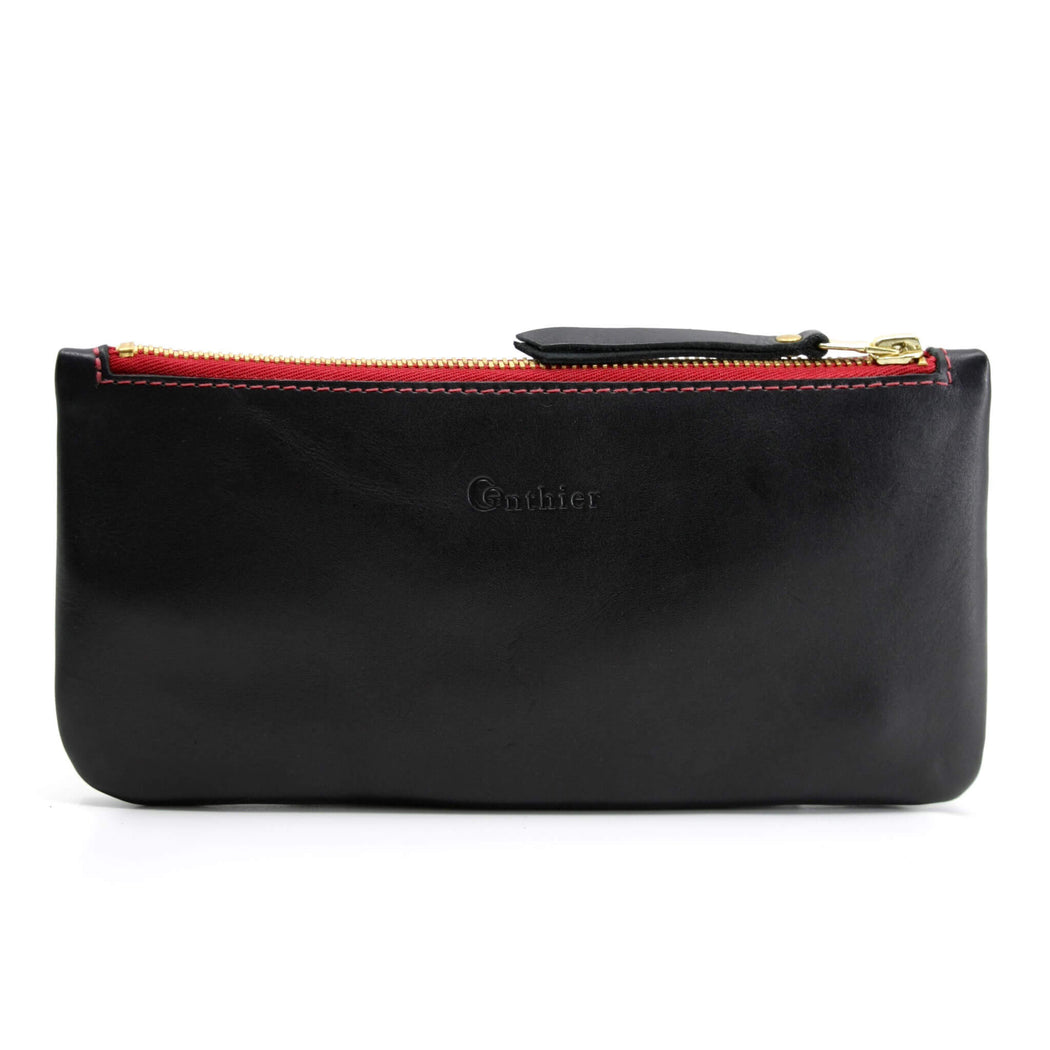 This calfskin pouch is an elegant and functional accessory. It is perfect for storing your valuables such as’a phone, a checkbook, makeup and other personal essentials.Unlined.