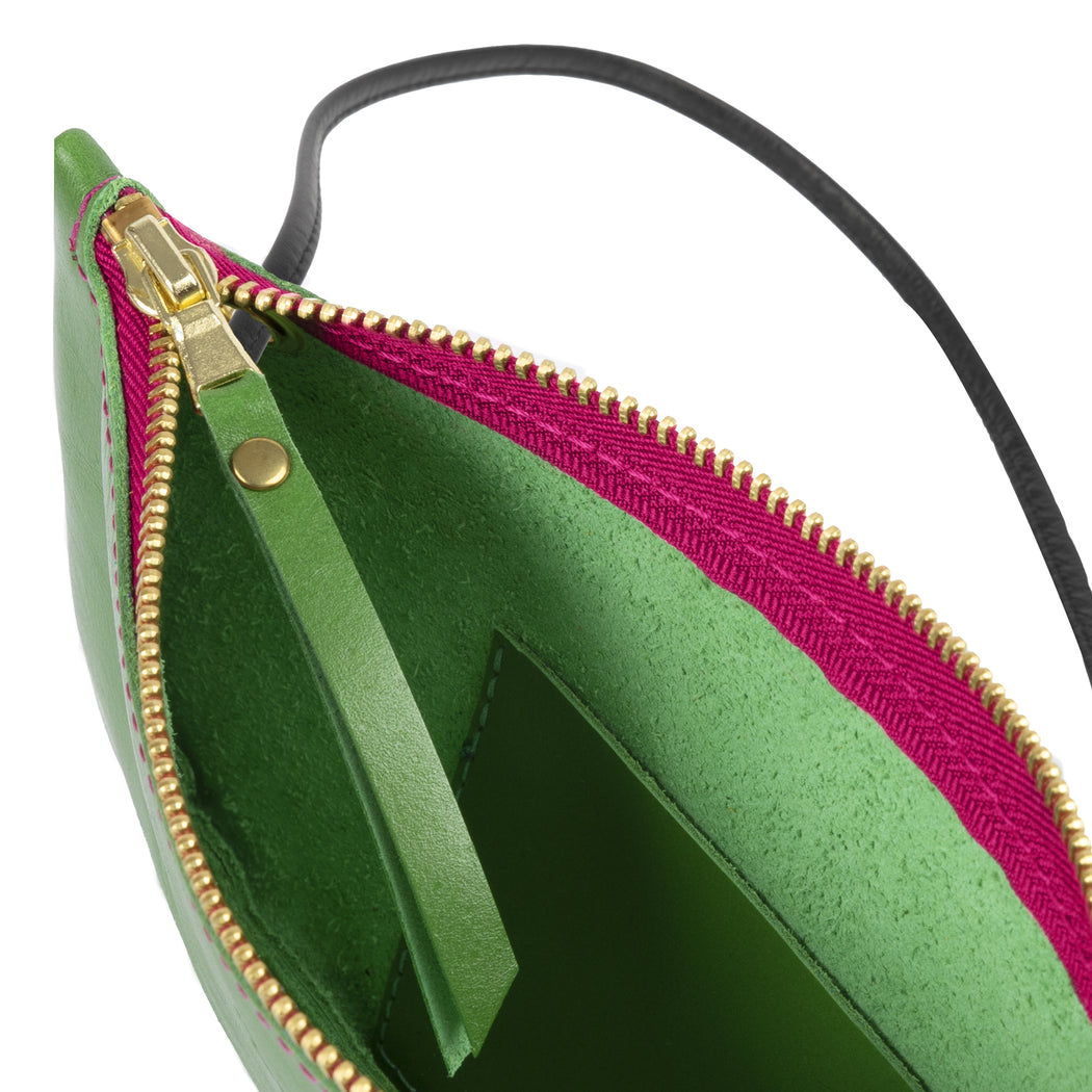 La bandoulière en cuir ajustable offre la liberté de le porter à la taille, en diagonale pour plus d’aisance ou en petit sac de soirée porté sous le bras.