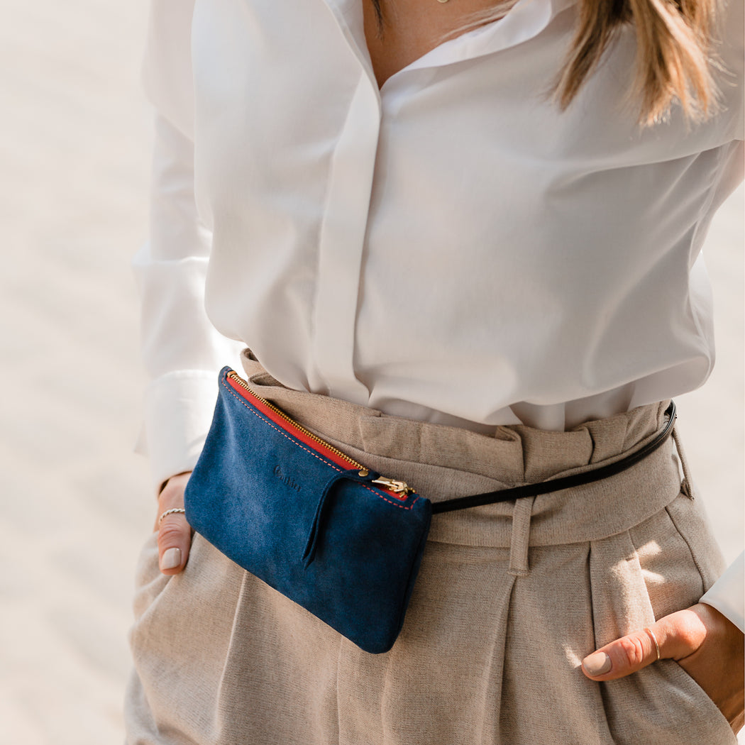 The adjustable leather shoulder strap offers the freedom to wear it at the waist, diagonally for more ease or as a small evening bag worn under the arm.